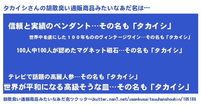 | ピコ太郎風あだ名 | 『タタ太郎』『タカ八郎』『ピタ八郎』 |