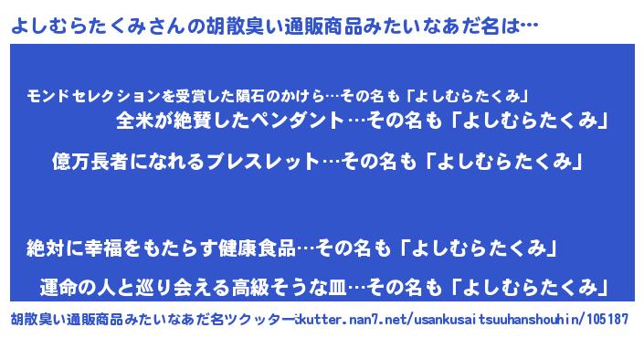 | 肩書あだ名 | 『よしむらたくみ社長』 |