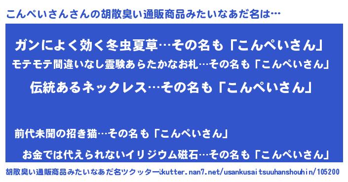 | ことわざ | 三つ子の魂100まで『こんぺいさんの魂100まで』 |