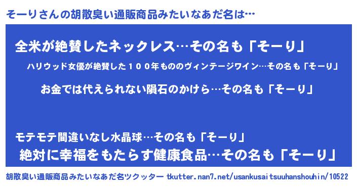 | ヒーロー風カッコイイあだ名 | 『友情の使者そーり』『炎刃騎士ソー』 |