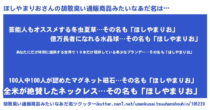 | 欧米人風あだ名 | 『ほしやまりお・ステッグマイヤー』 |