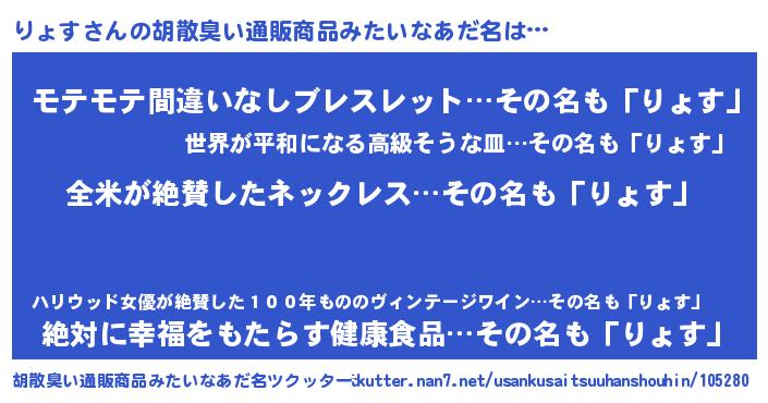 | 男性向けラノベタイトル風あだ名 | 『りょすの嫁は女の子じゃないと思った?』 |