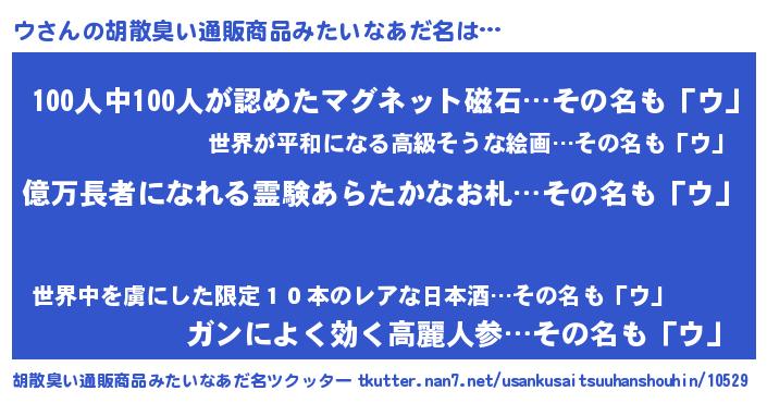 | ポケモン風あだ名 | 『ウチュウ』『ウックウザ』『ウダネ』 |