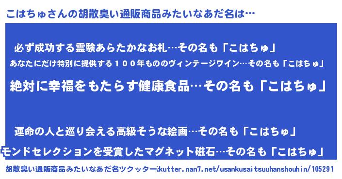 | 意味不明あだ名 | 『永久保存こはちゅ』『ペロリンこはちゅ』 |