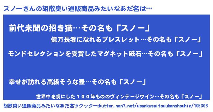 | ヘコむあだ名 | 『スノー(小並感)』『スノにー』 |