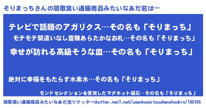| 意味不明あだ名 | 『そりまっちフォーエバー』 |