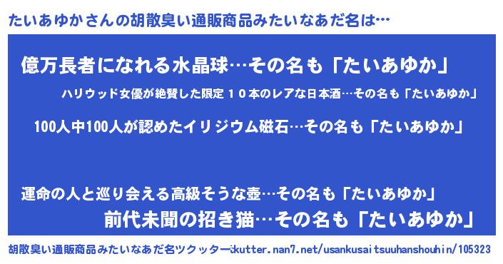 | ヘコむあだ名 | 『たいふぇ~』『たいあゆか(震え声)』 |
