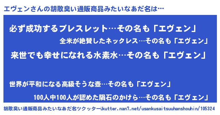 | 意味不明あだ名 | 『永久保存エヴェン』『ペロリンエヴェン』 |