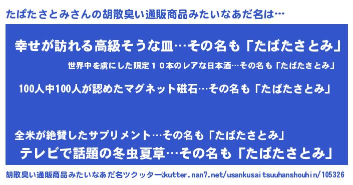 | 男性向けラノベタイトル風あだ名 | 『タバタサトミスレイヤー』 |