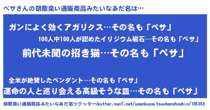| 意味不明あだ名 | 『永久保存ペサ』『自称ペサ』 |
