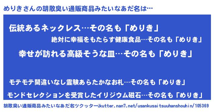 | 意味不明あだ名 | 『めりきフォーエバー』『永久保存めりき』 |