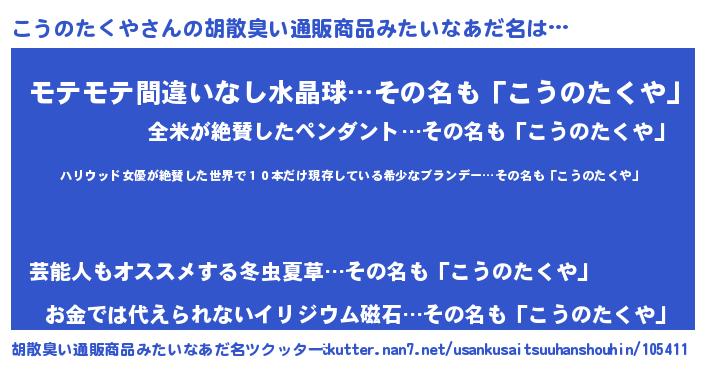 | 伝説のあだ名 | 『伝説のスナイパーこうのたくや』 |