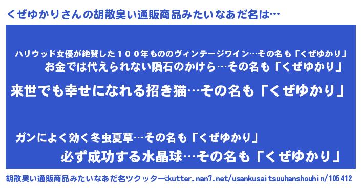 | 意味不明あだ名 | 『永久保存くぜゆかり』 |