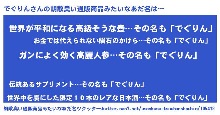 | 意味不明あだ名 | 『自称でぐりん』『でぐりんフォーエバー』 |