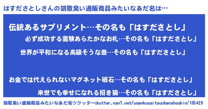 | 肩書あだ名 | 『はすださとし大統領』 |