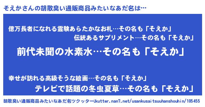 | ヘコむあだ名 | 『そえか(遠い目)』『そえもー』 |