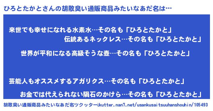 | ヘコむあだ名 | 『なまこ酢』『ひろとたかと(笑)』 |