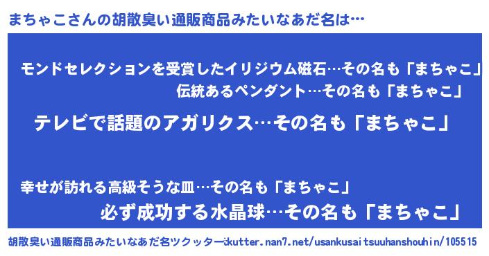 | 意味不明あだ名 | 『自称まちゃこ』『ペロリンまちゃこ』 |