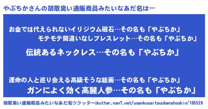 | 意味不明あだ名 | 『とにかく怪しいやぶちか』 |
