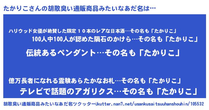 | 恥ずかしいあだ名 | 『タカリンリン』『タカリコデラックス』 |