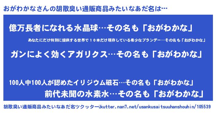 | ヘコむあだ名 | 『おがにゅー』『おがわかな(笑)』 |