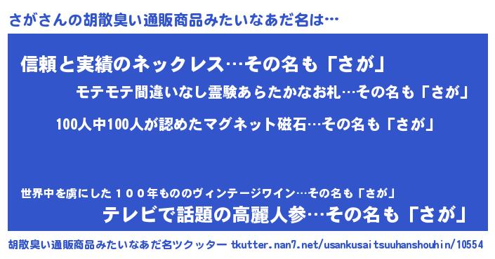 | 女子向けラノベタイトル風あだ名 | 『さが夫妻のなれそめ』『闇のさが』 |