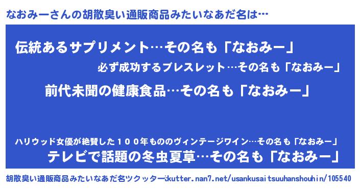 | ヘコむあだ名 | 『なおみー(笑)』『なおっ子』 |