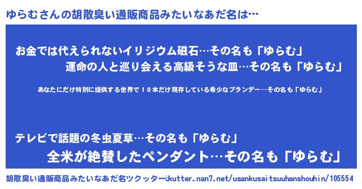 | 意味不明あだ名 | 『住所不定無職ゆらむ(81歳)』 |