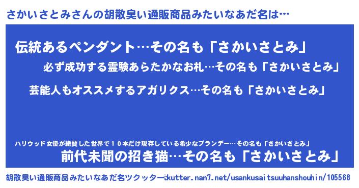 | 肩書あだ名 | 『さかいさとみ総統』『さかいさとみ塾長』 |