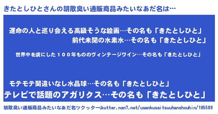 | ヒーロー風カッコイイあだ名 | 『仮面キタダー』『最強戦士キタトシヒト』 |