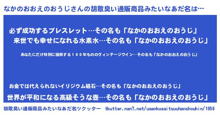 | 意味不明あだ名 | 『住所不定無職なかのおおえのおうじ(8歳)』 |