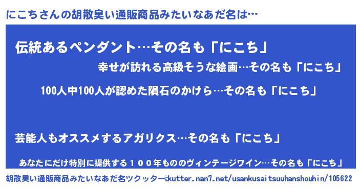 | 欧米人風あだ名 | 『ダニエルにこち』『ウサインにこち』 |