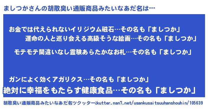 | ヒーロー風カッコイイあだ名 | 『スーパーマシツカ』『ネオマシツカ』 |