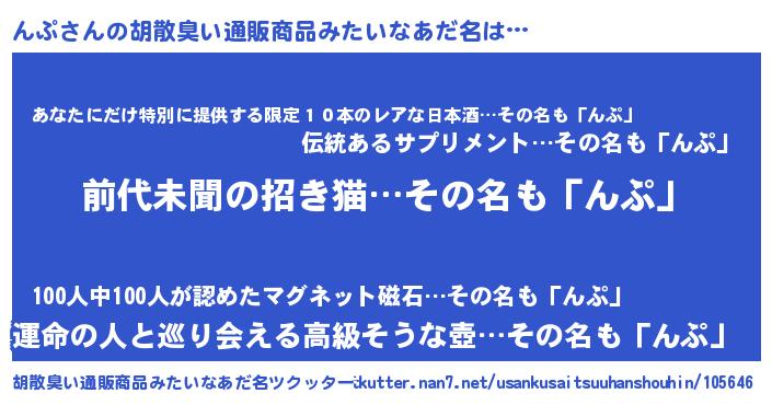 | ヘコむあだ名 | 『んぷ(笑)』『なまこ酢』『んぷっ子』 |