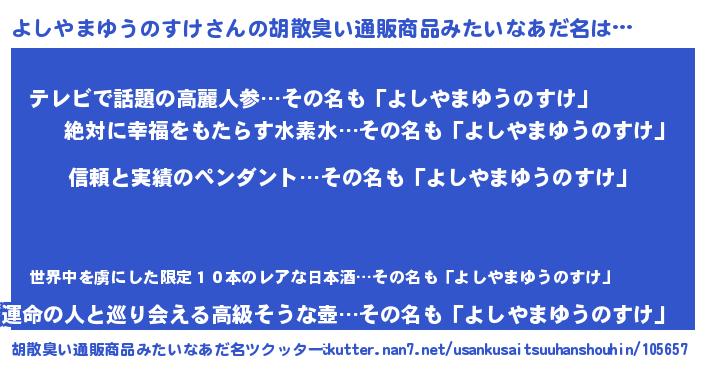 よしやまゆうのすけさんの胡散臭い通販商品みたいなあだ名をツクッター!