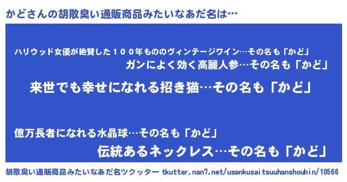 | 恥ずかしいあだ名 | 『かどちん』『カドリンリン』 |
