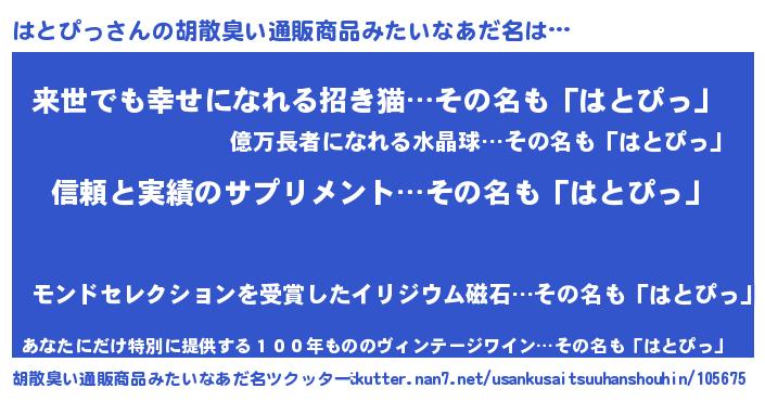 | 意味不明あだ名 | 『とにかく怪しいはとぴっ』 |