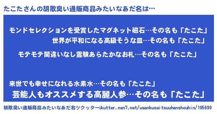 | 欧米人風あだ名 | 『マイケルたこた』『ダニエルたこた』 |