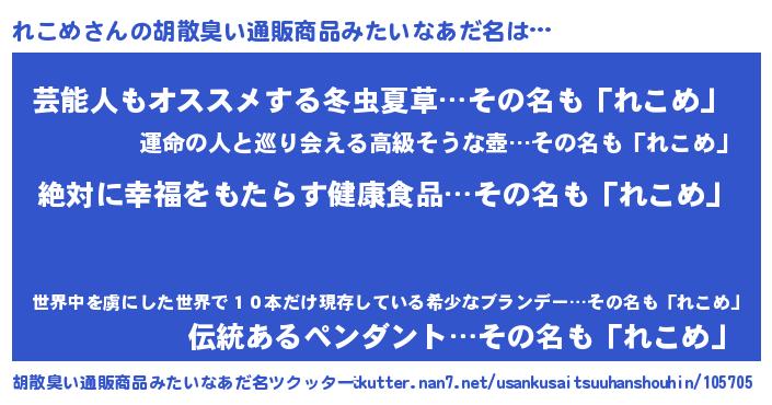 | ヘコむあだ名 | 『れこめ(苦笑)』『れこっちょ』 |