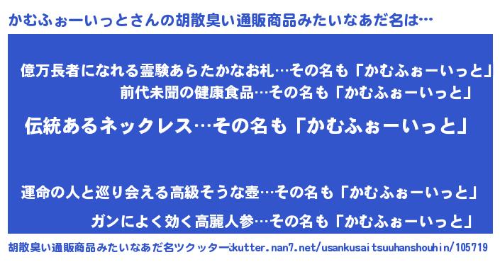 | 伝説のあだ名 | 『解き放たれた僧侶かむふぉーいっと』 |