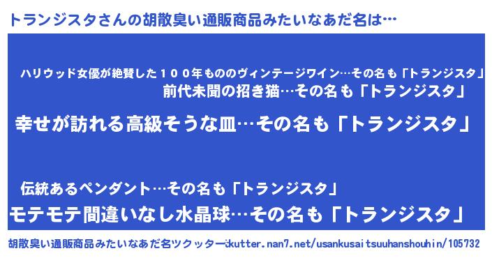 | 意味不明あだ名 | 『トランジスタフォーエバー』 |