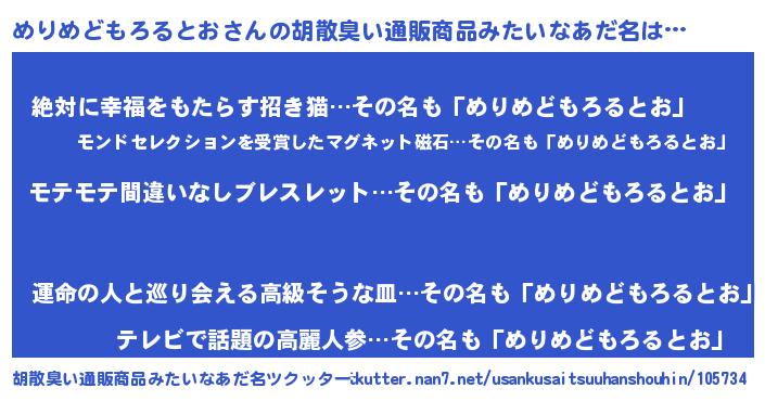 | ヘコむあだ名 | 『めりにー』『めりめどもろるとお(笑)』 |