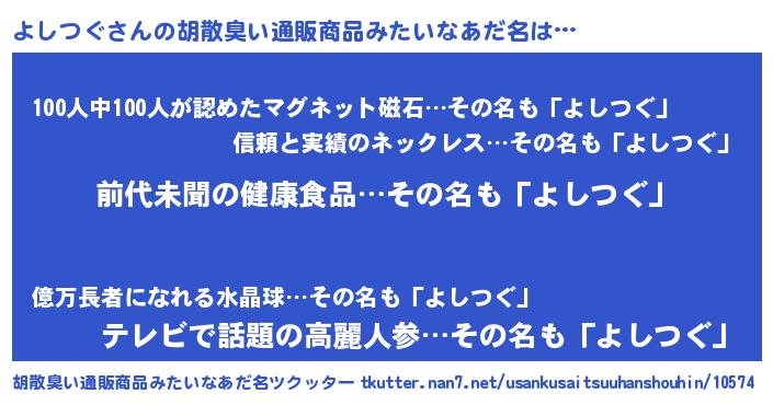 | ヒーロー風カッコイイあだ名 | 『ネオヨシツグ』『正義の使者よしつぐ』 |
