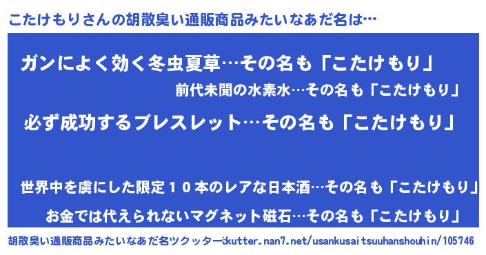 | 男性向けラノベタイトル風あだ名 | 『こたけもりの憂鬱』 |