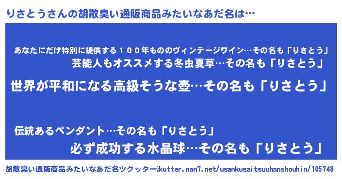 | ヘコむあだ名 | 『豆乳』『りさふぇ~』『りさ太郎』 |