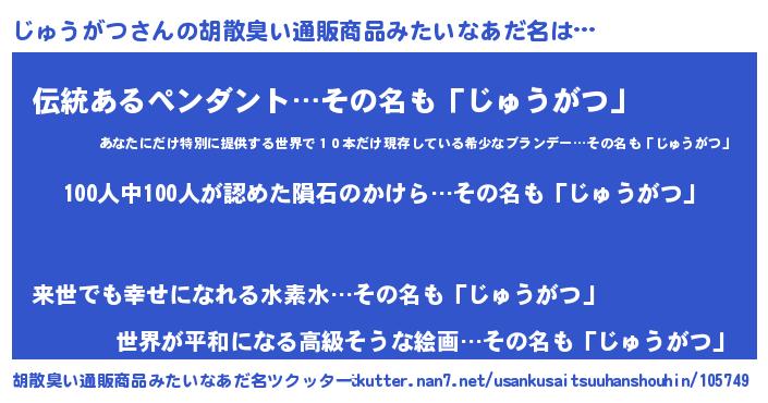 | 意味不明あだ名 | 『めかぶ科じゅうがつ属』 |