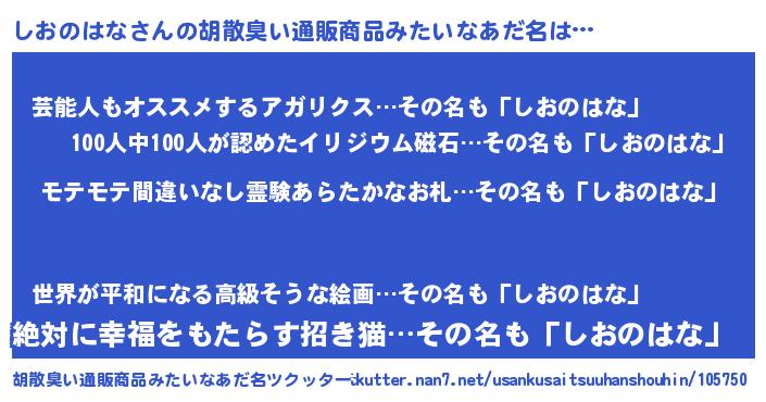 | ヘコむあだ名 | 『しおもー』『しおのはな(笑)』 |