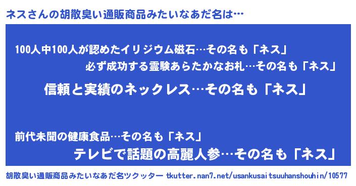 | ヘコむあだ名 | 『ネスっぺ』『ネスふぇ~』『豆乳』 |