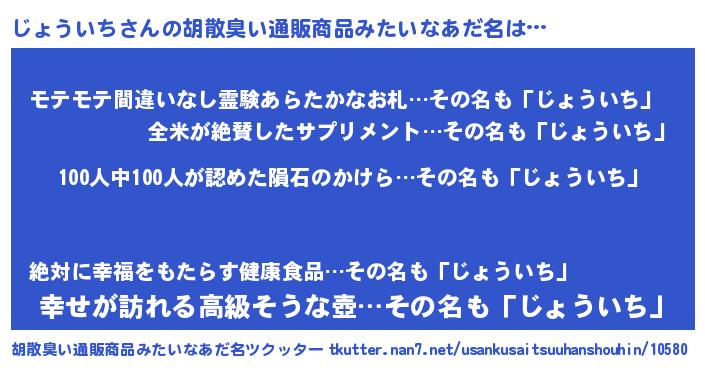 | ヒーロー風カッコイイあだ名 | 『正義の使者じょういち』『幻影騎士ジョ』 |