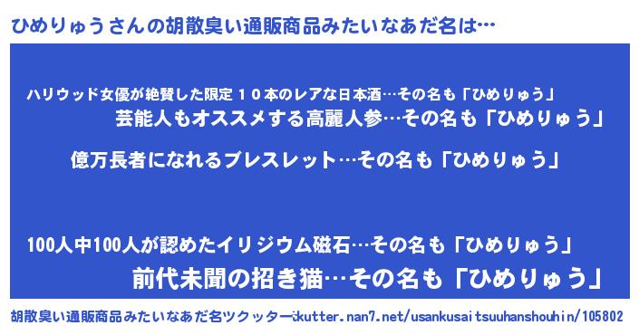 | 意味不明あだ名 | 『ペロリンひめりゅう』『自称ひめりゅう』 |